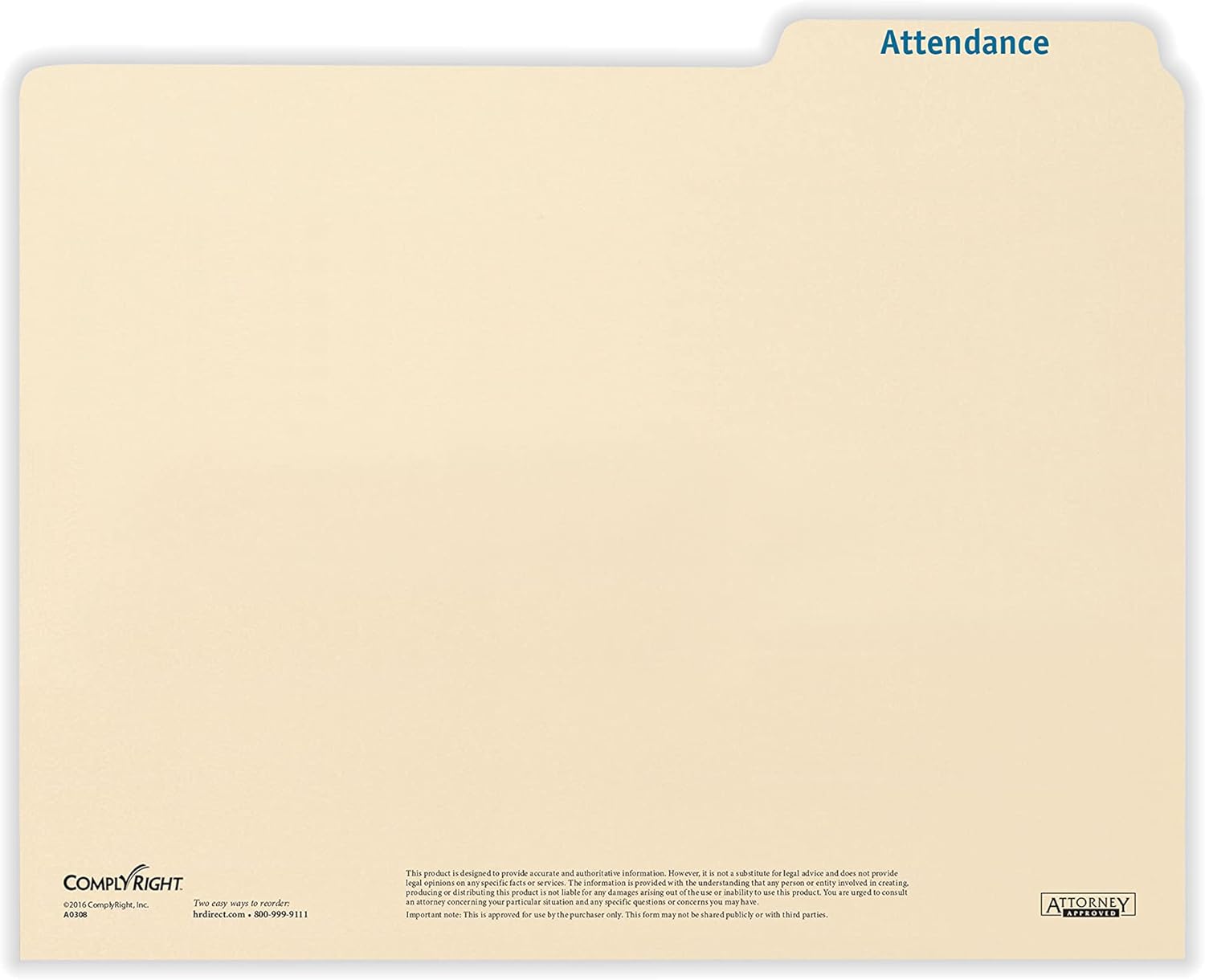 ComplyRight Attendance Folders | 11.75” x 9.5” | HR and Employee Management | 25-Pack