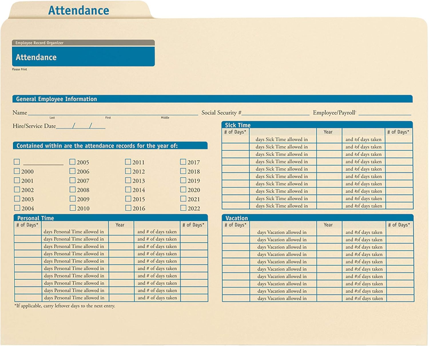 - RECORDKEEPING FOLDERS: ComplyRight Employee Attendance Records Organizer not only allows to store employee paperwork inside but also simplifies the whole process of recordkeeping by allowing the employer to capture personnel information right on the folder exterior for quick and easy access.