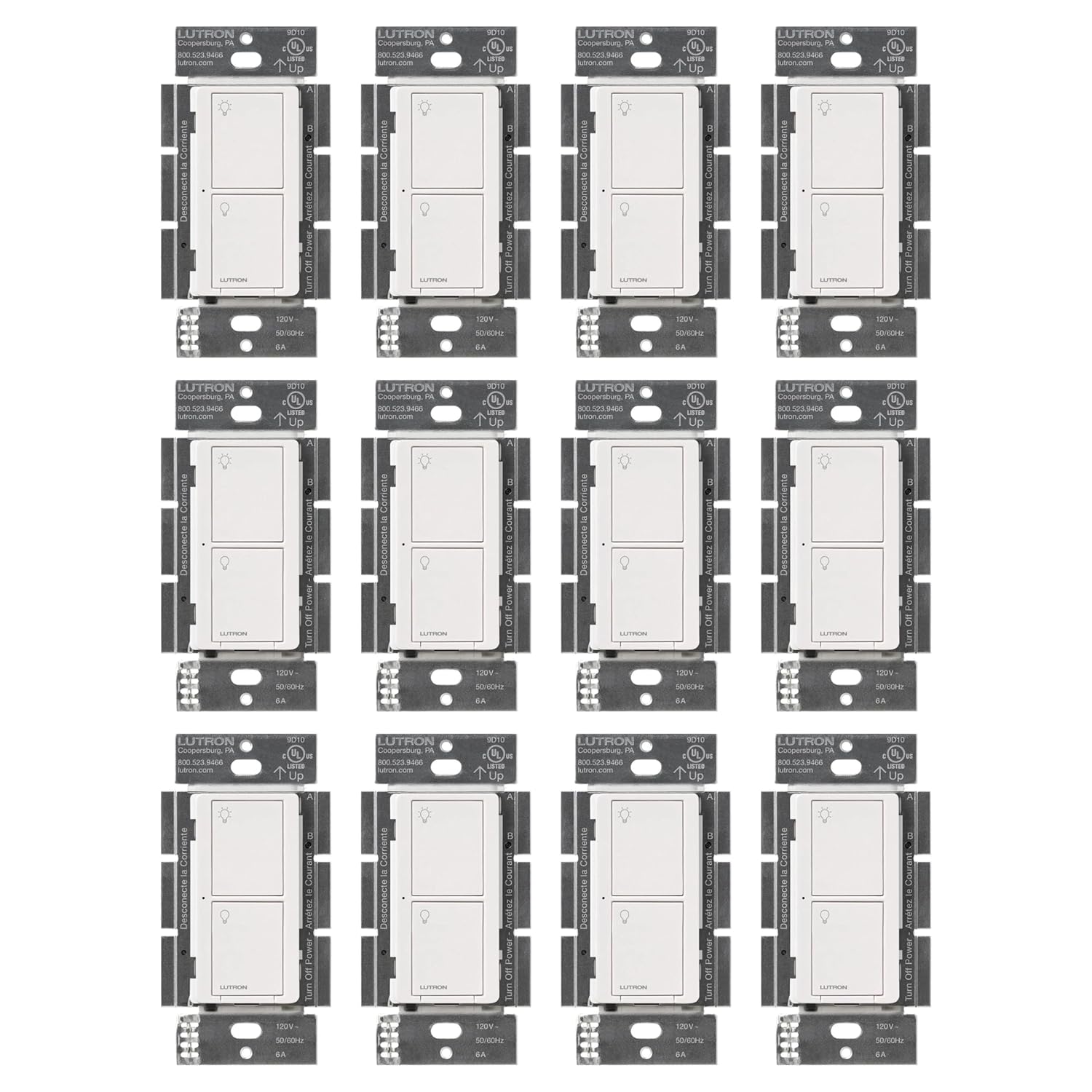 - INCLUDES: Package includes (12) Lutron Caseta Smart Switches. Coordinating white wall plate sold separately