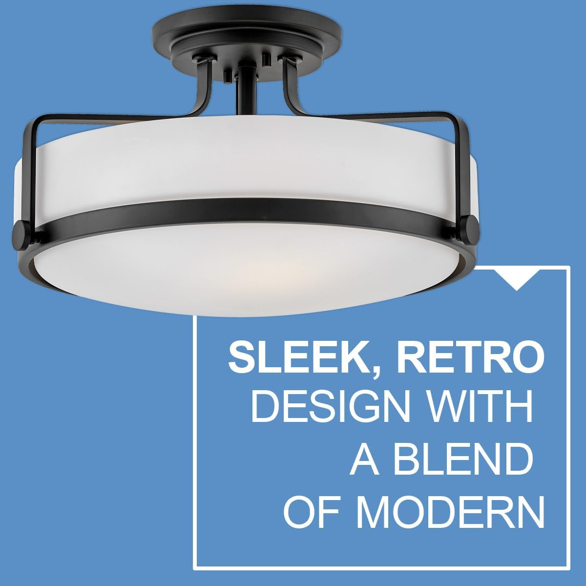 Hinkley Harper 3643BK Large Semi-Flush Ceiling Light - Sleek, Retro Style - Black + Etched Opal Glass