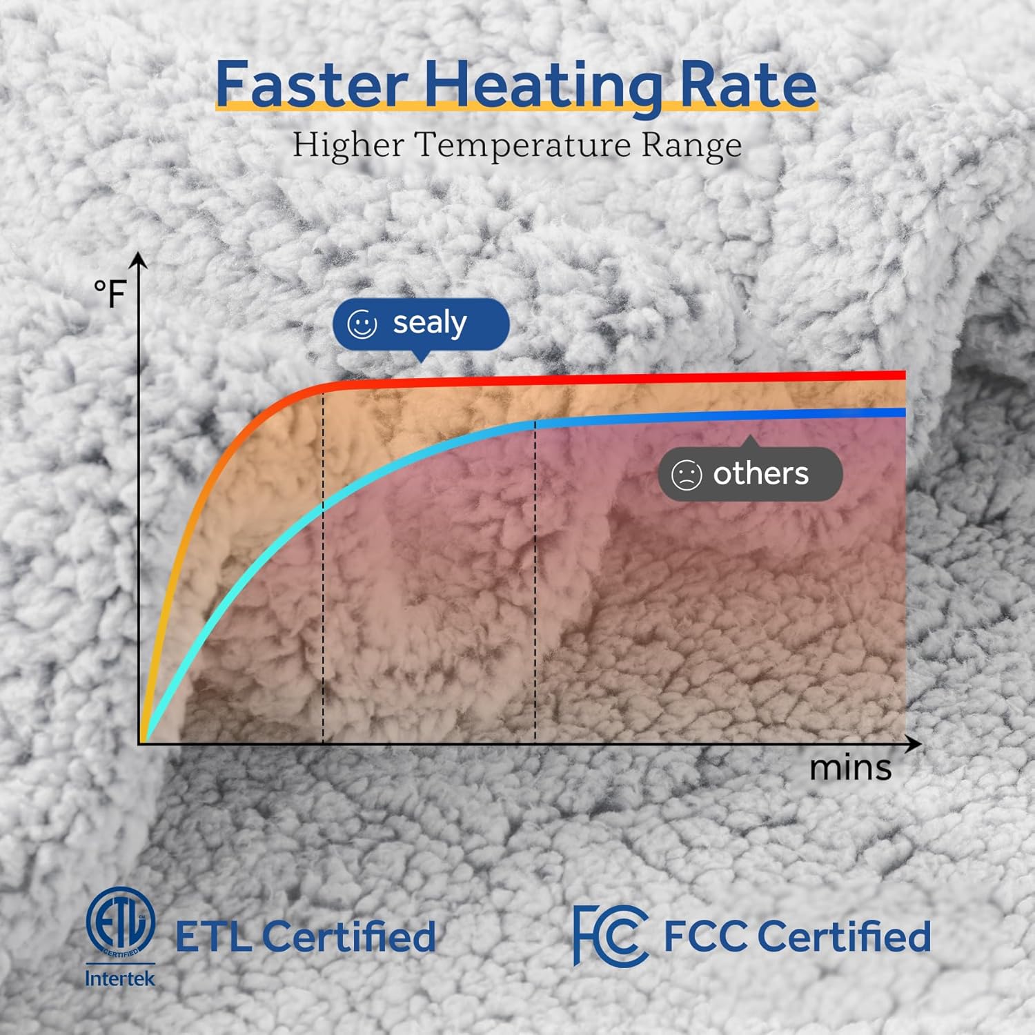- ★【SAFETY FIRST】Sealy heated throw blanket has ETL and FCC certifications, overheating protection, and 2-10 hour timed automatic shutdown in case you forget. Built-in high-quality heating wire, heating quickly. The U-shaped coil structure can distribute heat evenly, and can also prevent short circuits and overheating, effectively avoiding safety problems.