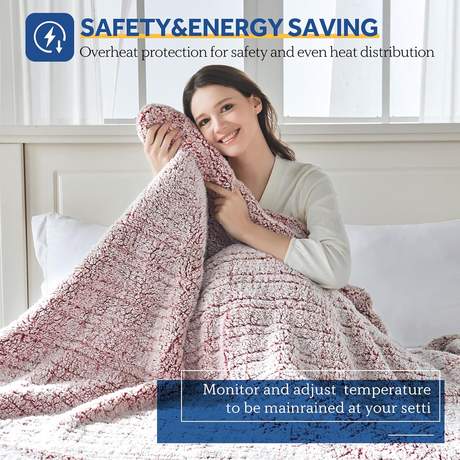 - ★【PREMIUM MATERIAL】Made of double layered 240gsm Sherpa and high-quality heating elements, the electric blanket creates a soft, luxurious feel, providing a cozy and comfortable sleeping experience, allowing you to stay cozy and warm even on the coldest winter nights. Full size 80x84in, make sure you are covered softly and comfortably.