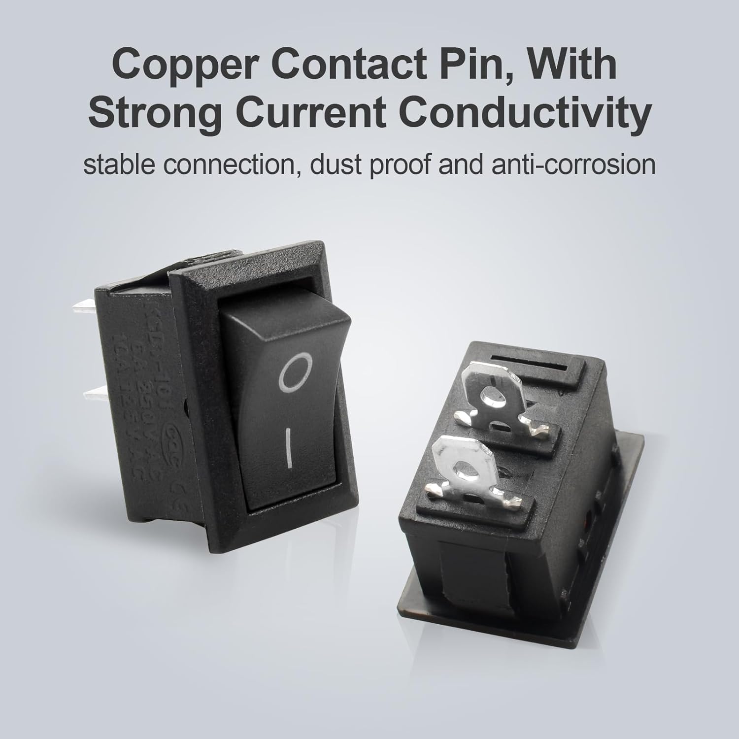 - 【Strong electrical conductivity】:The rocker switch adopts copper contact pin, with strong current conductivity, stable connection, dust proof and anti-corrosion.