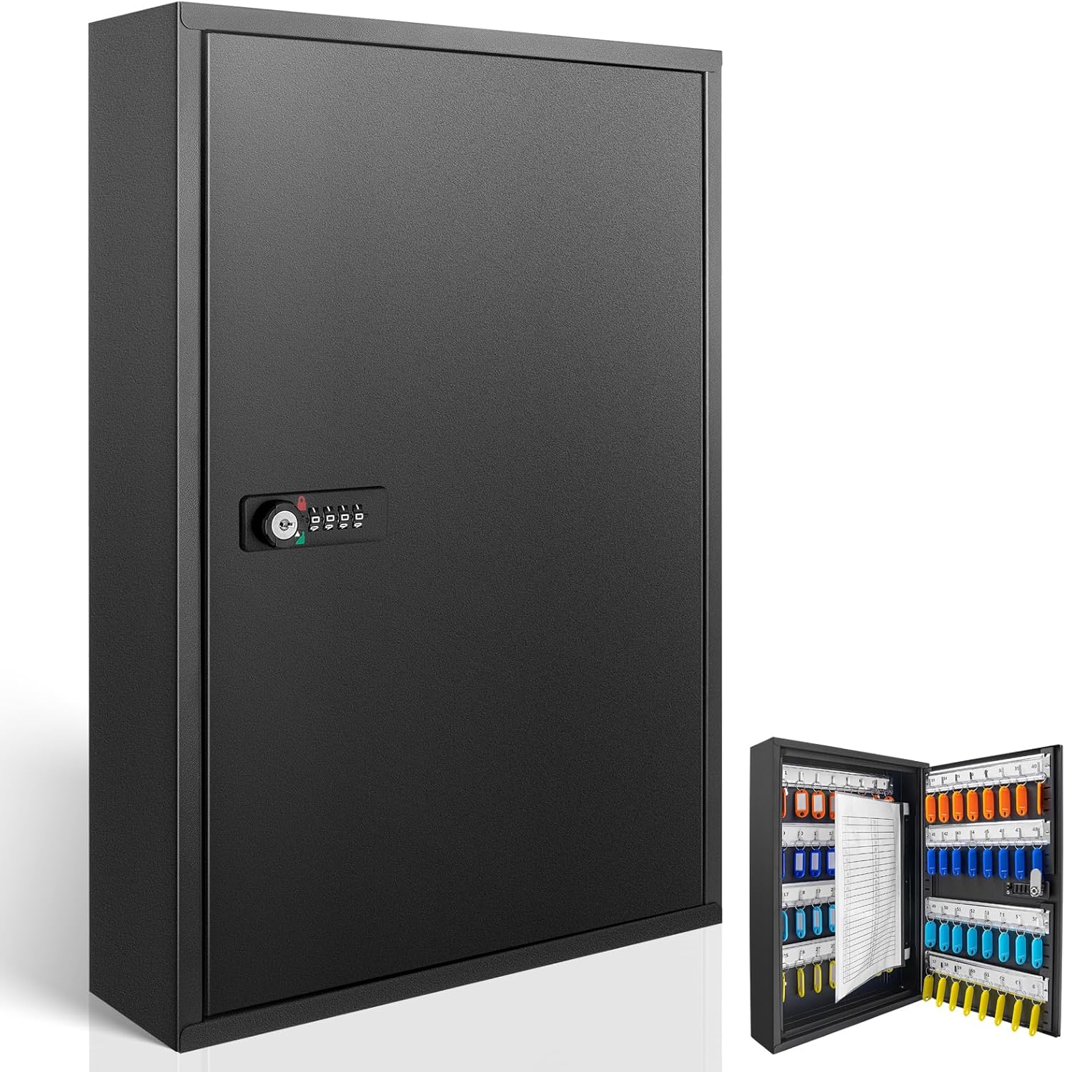 - Large Capacity Key Cabinet: Our key cabinet, designed for secure key storage, offers a spacious and well-constructed solution. Each row of hooks in the key cabinet has a 3.3-inch distance between them, allowing the Easy Access Key Cabinet Lock Box to accommodate up to 64 keys