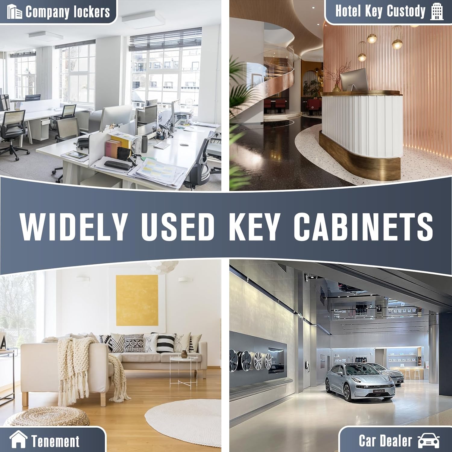 - Wide Application Key Cabinets: This wall-mounted key cabinet incorporates a hook-style design, making it easy and convenient to organize keys by allowing you to hang individual keys or multiple keys using the included key tags. It is ideal for various settings, including homes, offices, property management, apartment complexes, car lots, car dealerships, repair shops, and many more