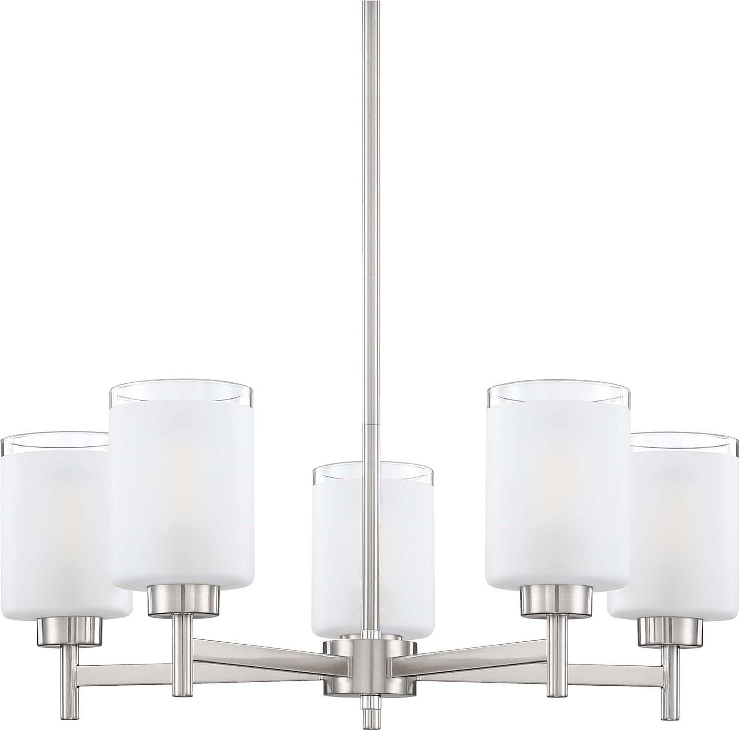 Doraimi Lighting 5 Light Chandelier Brushed Nickel Finish,Classic Style Ceiling Pendant Light Clear Frosted Glass Shade Fixture for Meeting Room Dining Room Over Table Living Room