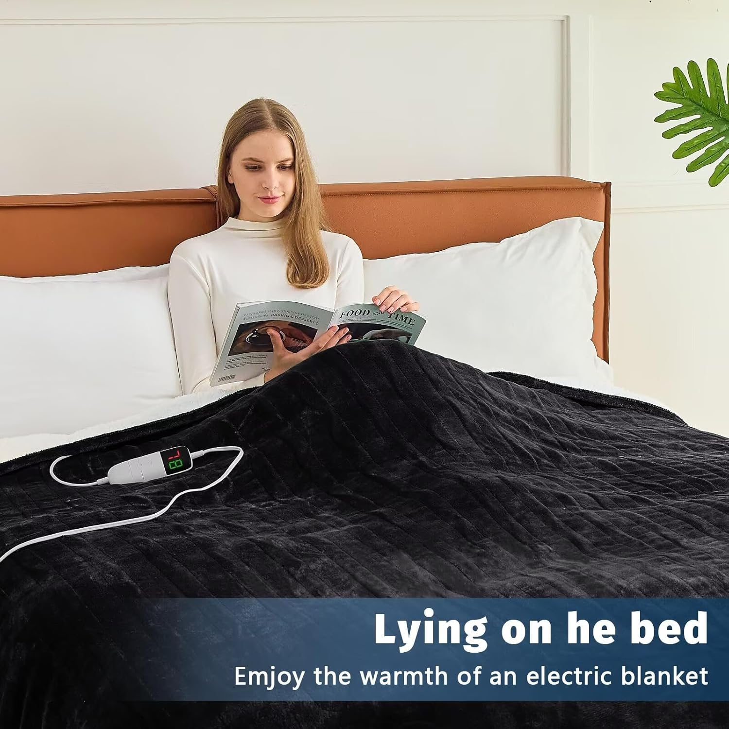- 【SAFE AUTO SHUT-OFF】: Featuring automatic shut-off fucntion,and you can control the queen electric blanket to automatically shut down at 1/2/4/6/8h through the controller.If you forget to set it, don't worry too much.Warm blankets for winter is designed with built-in safety features and will automatically shut down after 8 hours of use.