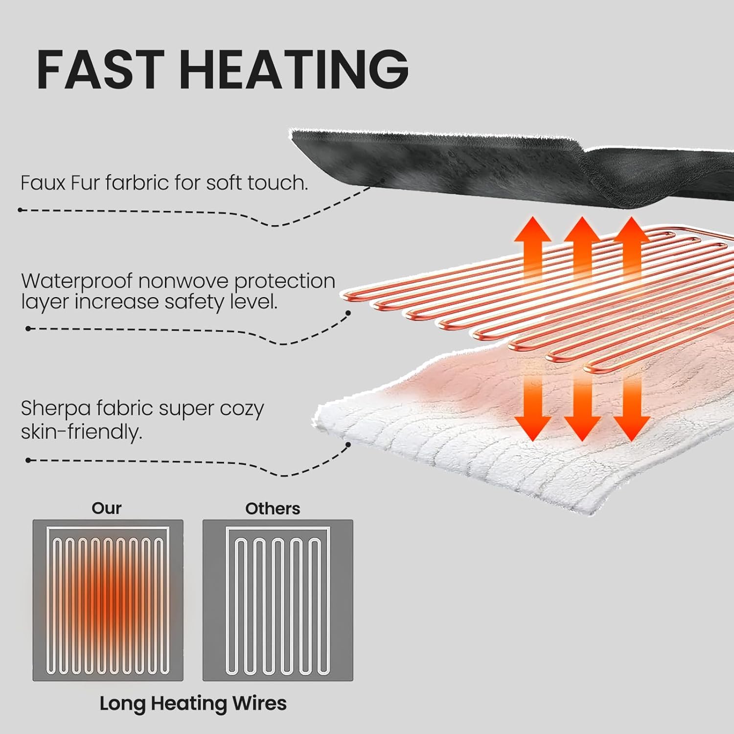 - Fast Heating: With lightning-fast heating capabilities, this electric blanket quickly envelops you in a warm embrace, banishing winter’s chill in an instant. Say goodbye to shivering and welcome a world of toasty comfort.
