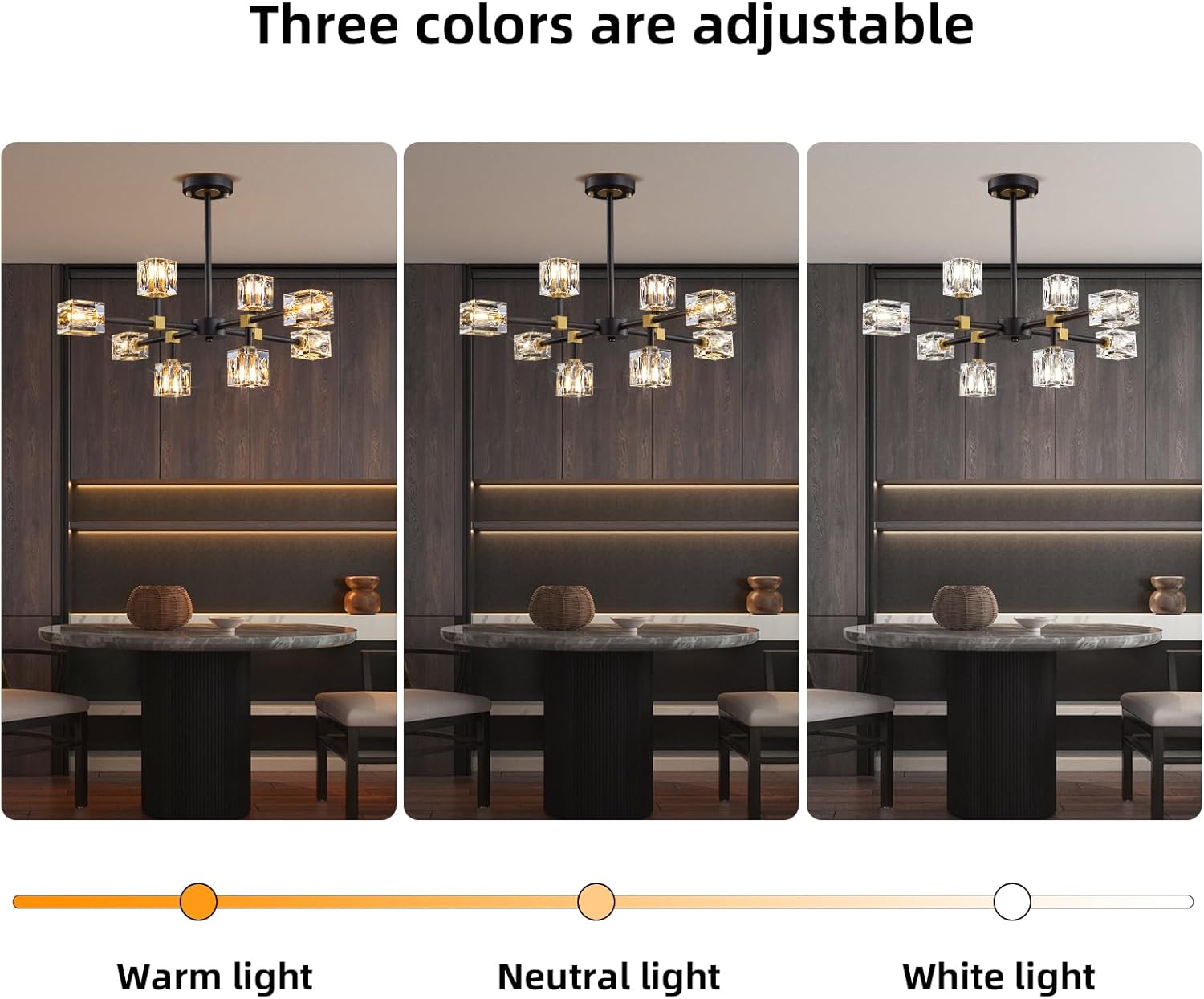 Black Sputnik Chandelier,Crystal Chandeliers with 8-Lights,Modern Semi Flush Mount Ceiling Light Fixture with Adjustable Height,Pendant Light Fixture for dining room,kitchen island,bedroom,living room