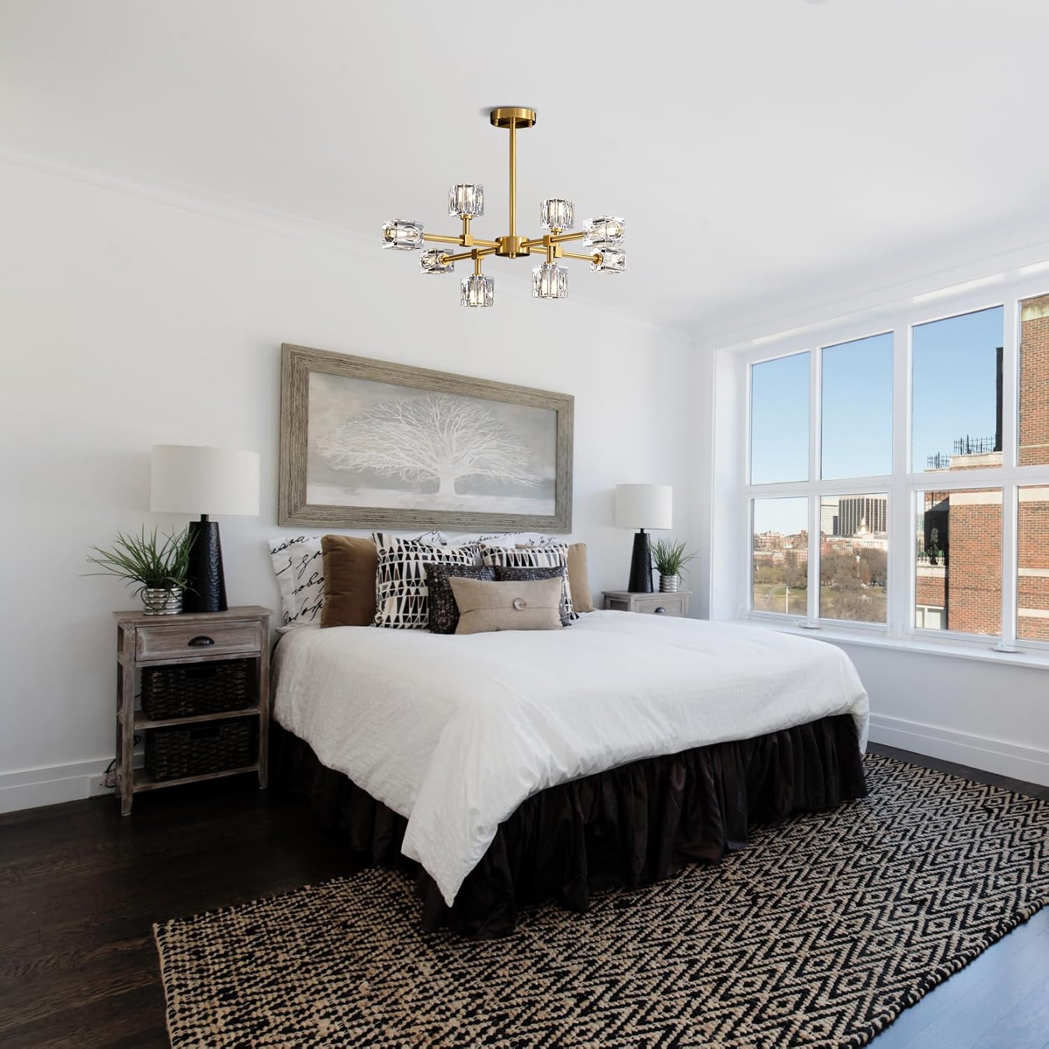 Sputnik Chandeliers for Dining Room Light Fixture, Modern Crystal Chandelier, 8-Lights Gold Semi Flush Mount Ceiling Light for Living Room Bedroom, Dining Room,Kitchen Island