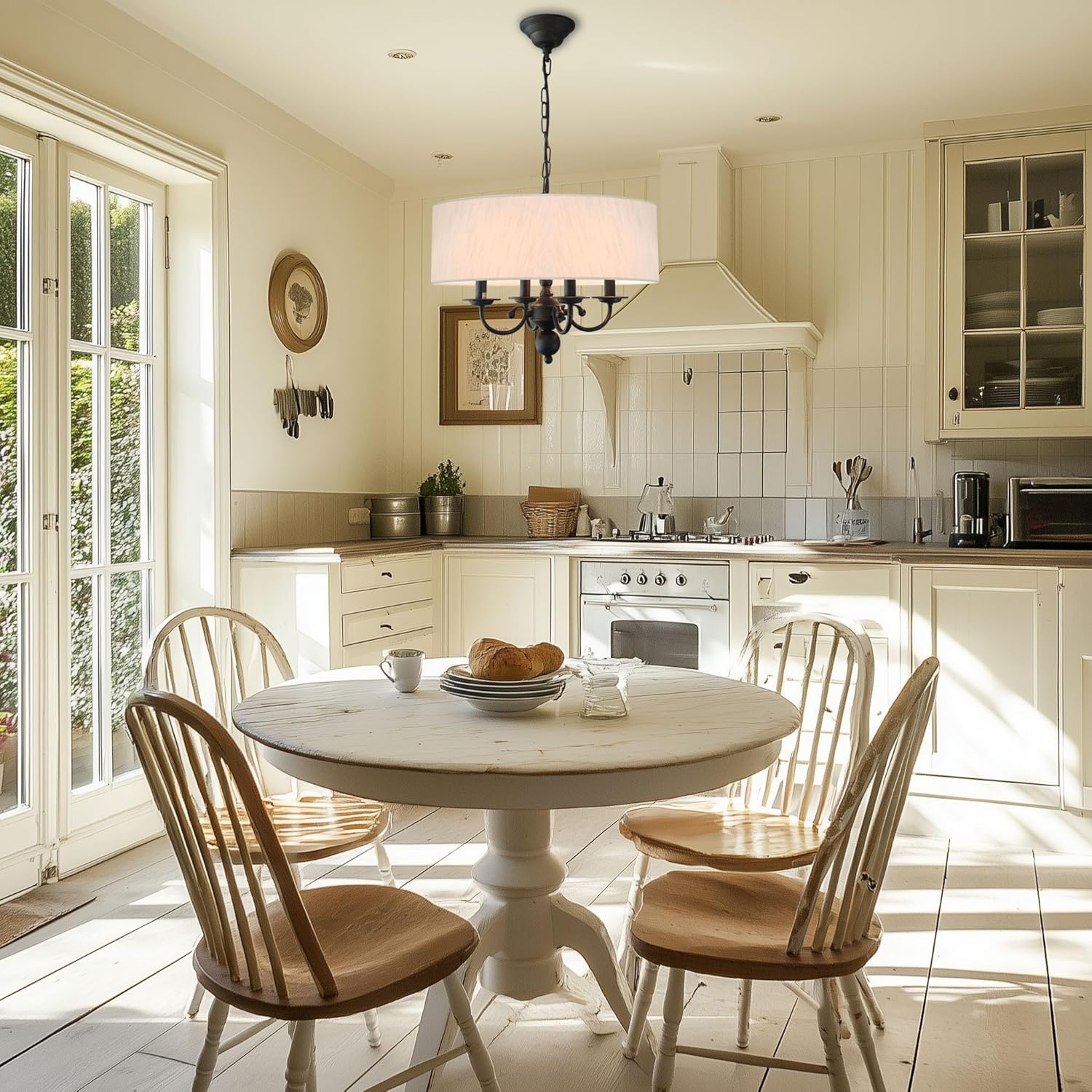 - [ Widely Application ] - The drum chandelier is ideal for different areas including the dining room, living room, kitchen island, bedroom, entryway, foyer, hallway, or office, in farmhouse, traditional, transitional, and contemporary style settings.