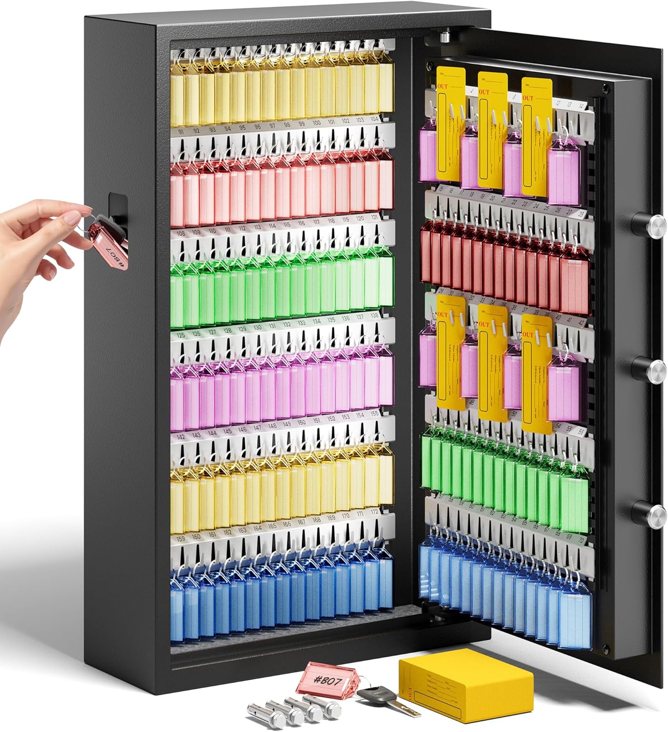 Heavy Duty 172 Keys Electronic Key Lock Box with Anti-Theft Deposit Key Slot & Key Out Tags, Key Cabinet Wall Mount with Code for Home Office