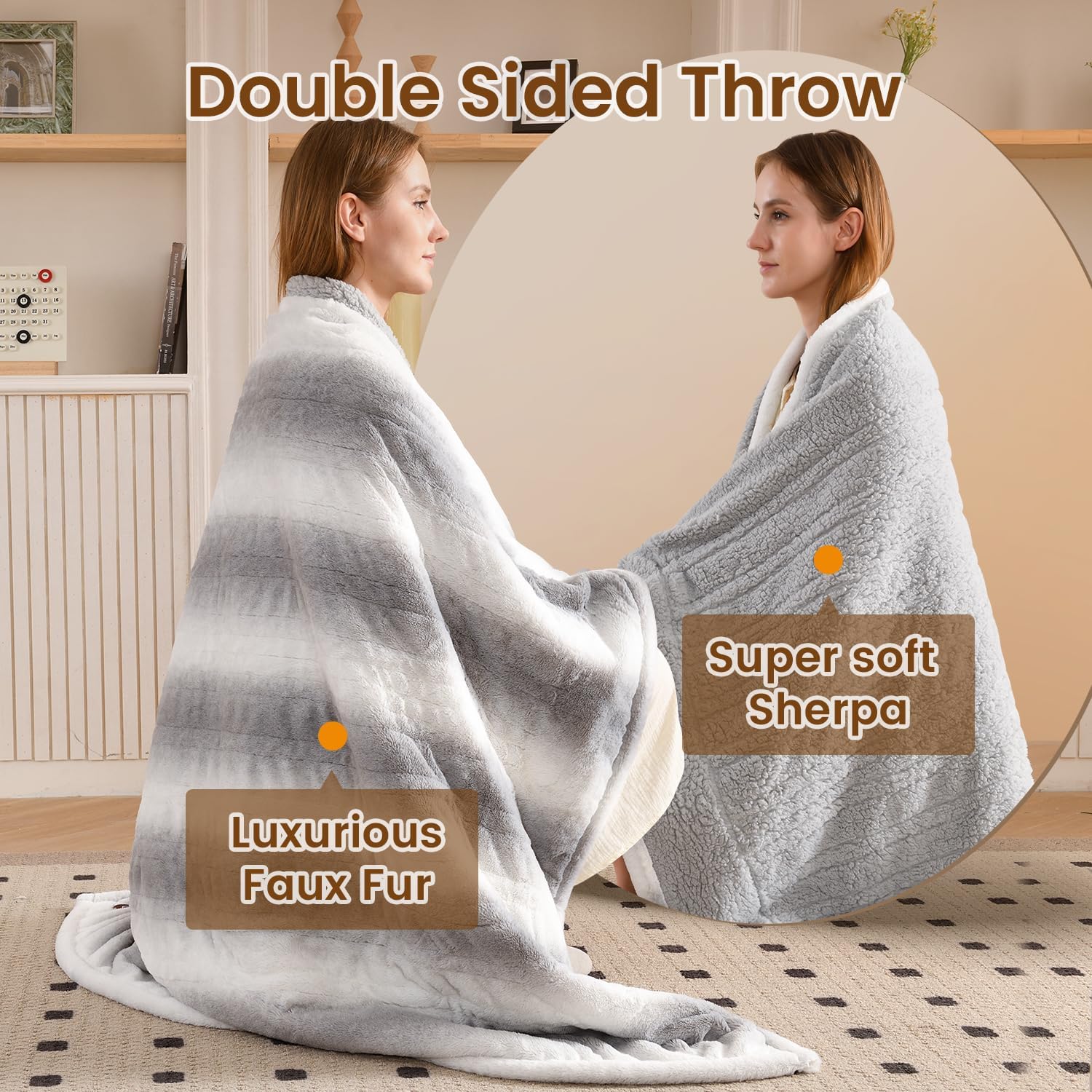 Bearhug Heated Blanket 6 Heat Settings Electric Blanket, 4-Hour Auto Shut-Off, Luxurious Faux Fur & Sherpa Dual-Sided Heated Throw, Machine Washable, 50 x 60 Inches, Gift-Ready Elegant Packaging