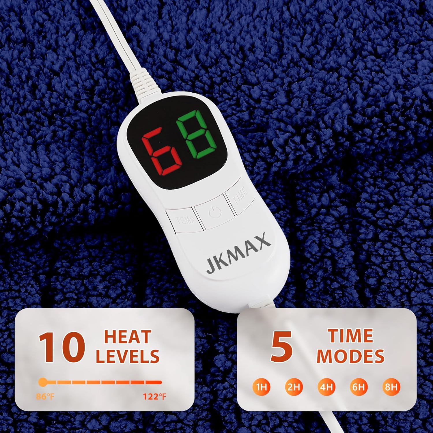 - SOFT & COMFORTABLE FABRIC: JKMAX Electric blanket is made of 220gsm Sherpa with a particularly soft touch. The heating wire diameter of the electric blanket is 2.2 millimeters, which is almost imperceptible when lying on it