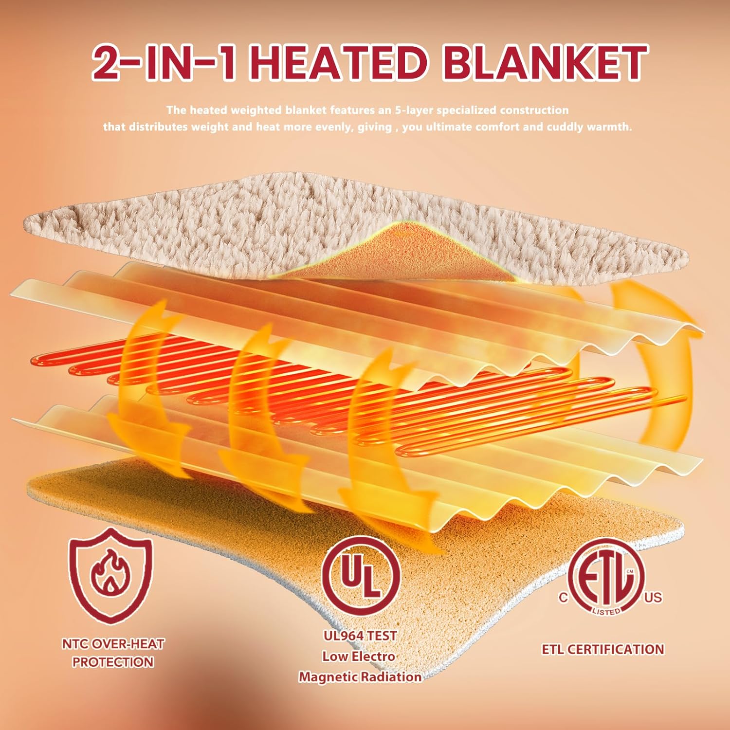 - SAFE CHOICE: JKMAX Heated blanket has passed UL 964 safety standard testing and obtained ETL certification, ensuring quality. The heating wire designed by a Japanese company through advanced technology has excellent insulation and stronger flame retardancy. The built-in NTC overheat protection system actively monitors temperature to prevent overheating risks and ensure absolute safety during operation