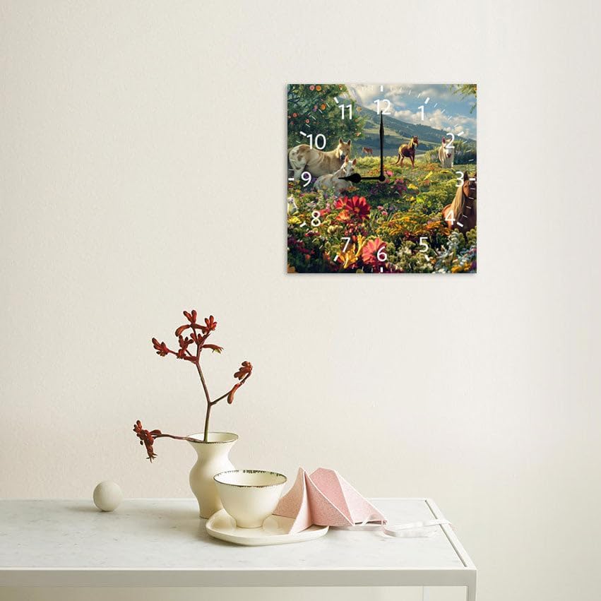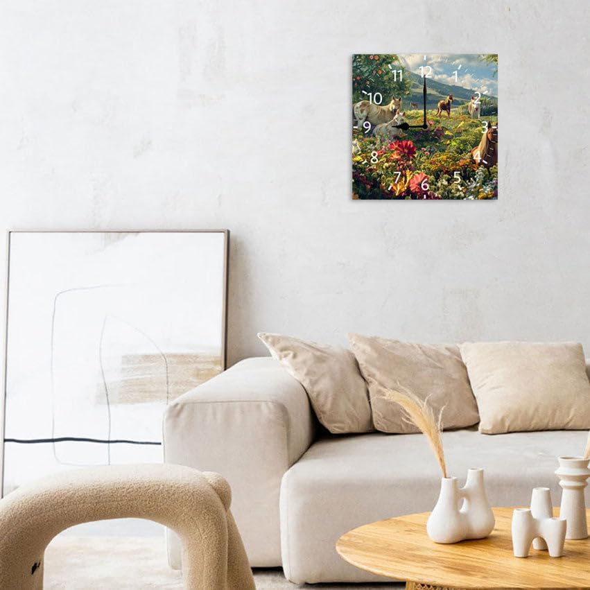 10 in Garden Cats and Horses -266 Wood Wall Clock – Digital Time Display, Smart Home Compatible for Bedside or Workspace