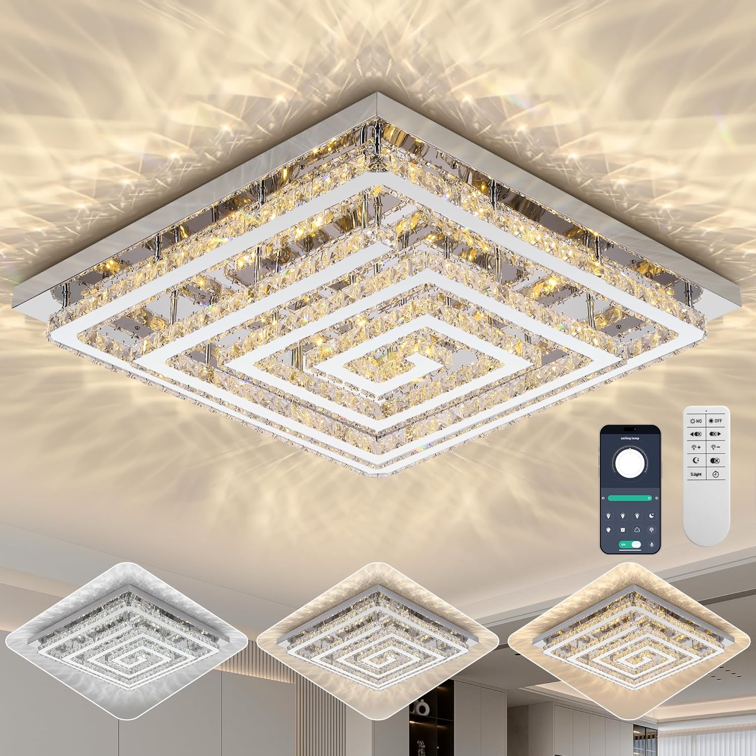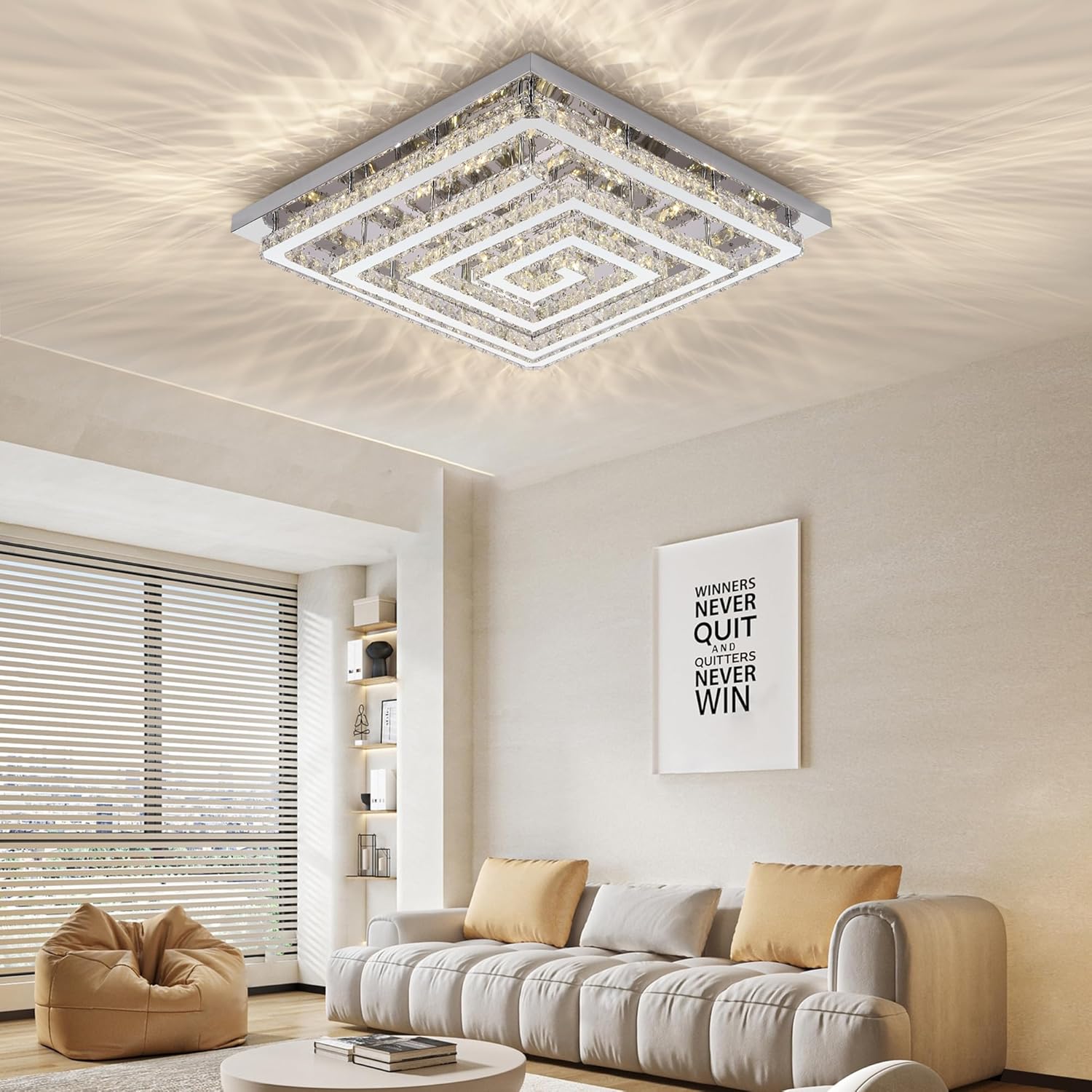 - Dimmable and 3-Color Temperature : Enjoy the flexibility of 3 color temperature settings with this Square Crystal Chandelier, making it easy to switch between warm, neutral, and cool light to suit your mood or activity. This Flush Mount Chandelier is equipped with dimmable LED technology, allowing you to customize the brightness according to your needs
