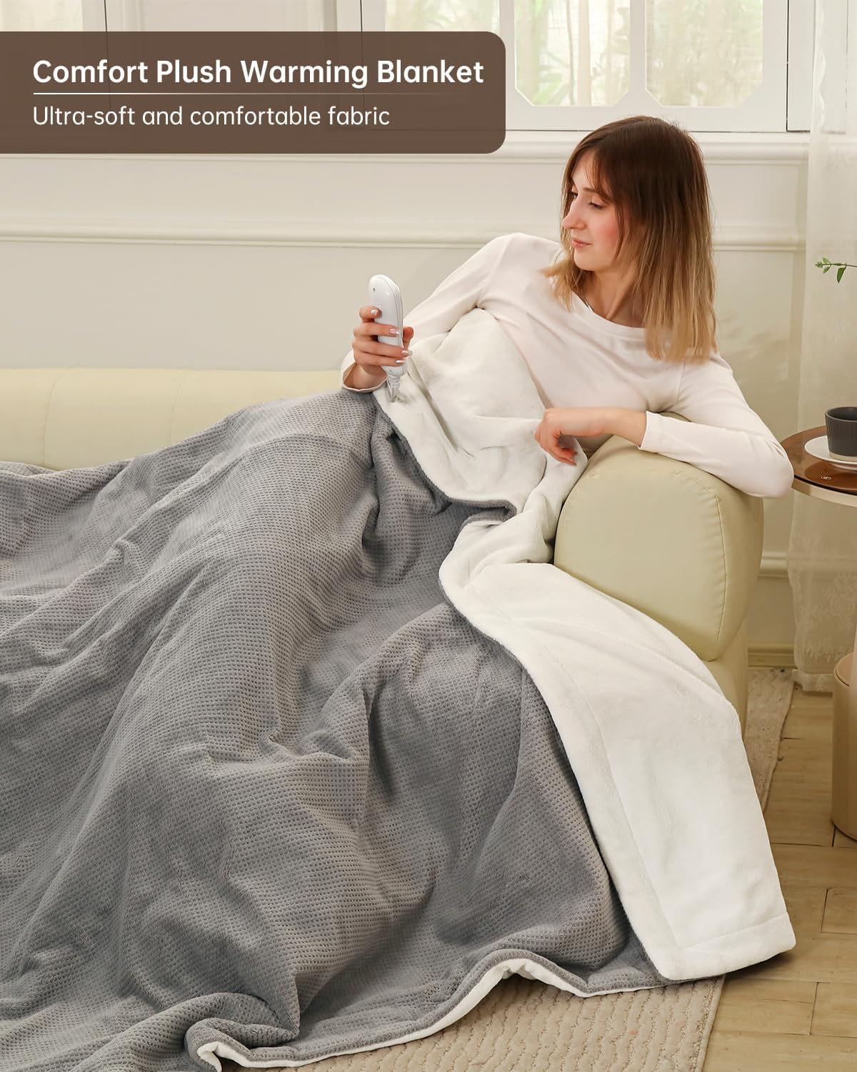 - [1–9 Hour Auto-Off Timer] Set the heated blanket to turn off automatically between 1 to 9 hours—ideal for overnight warmth or cozy comfort during daytime lounging. Worry-free use with energy-saving design.