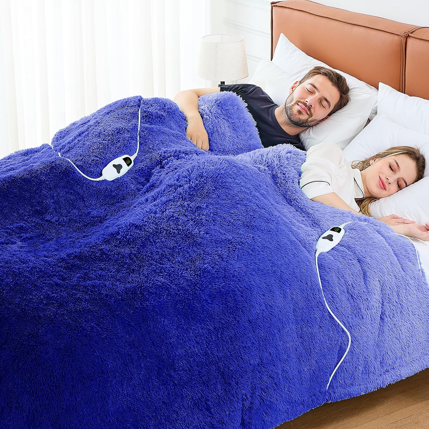 - DUAL CONTROLLERS FOR CUSTOMIZED COMFORT:While most queen electric blankets offer only 5 heat levels and a 3-hour auto-off timer, Our heating faux fur blanket offers 10 temperature settings (86°F–113°F) and 5 auto-off options (1h, 2h, 4h, 6h, 8h) for greater flexibility. Dual independent controllers allow couples or family members to set the temperature and timer that suits each person best — keeping one side comfortably warm while the other enjoys extra cozy heat.
