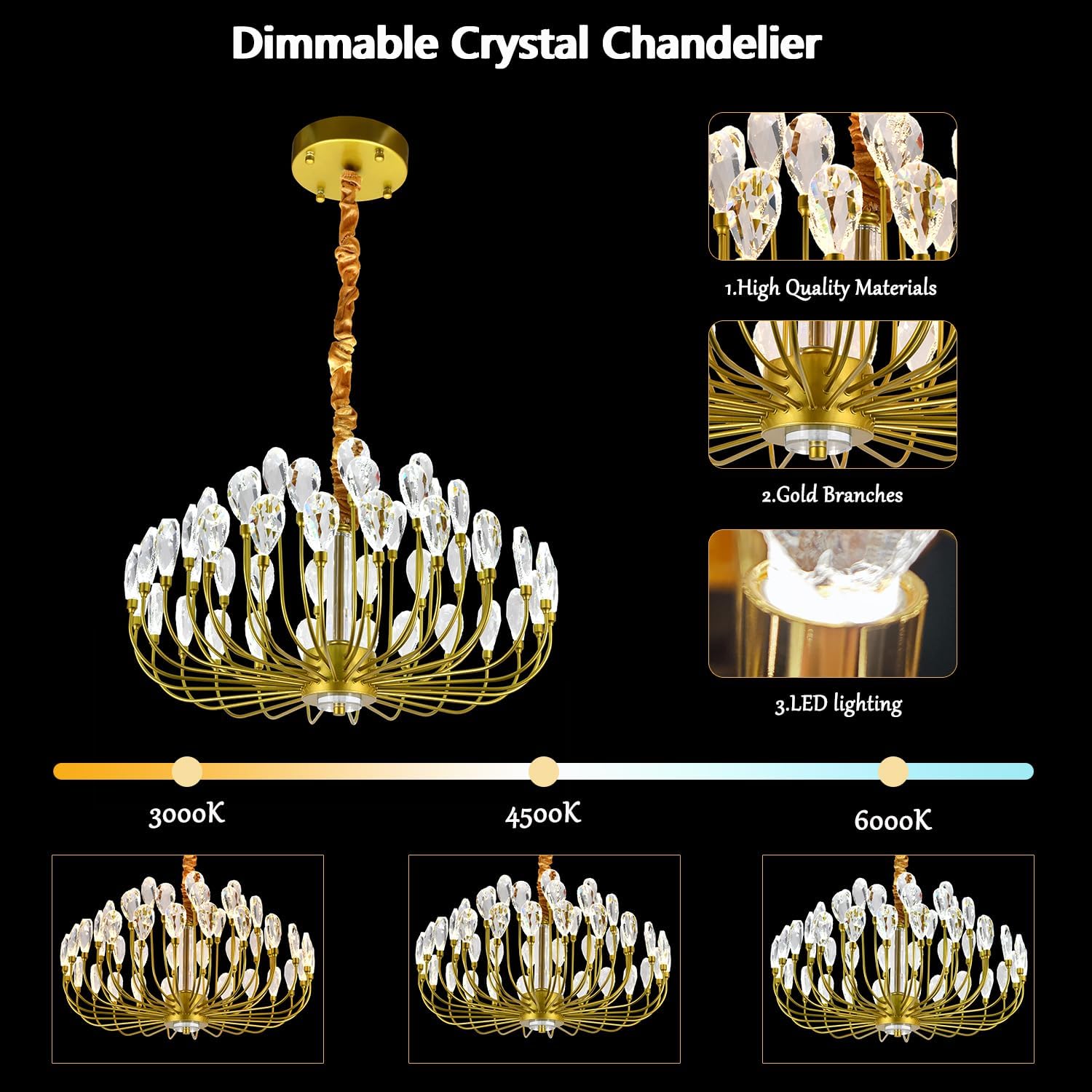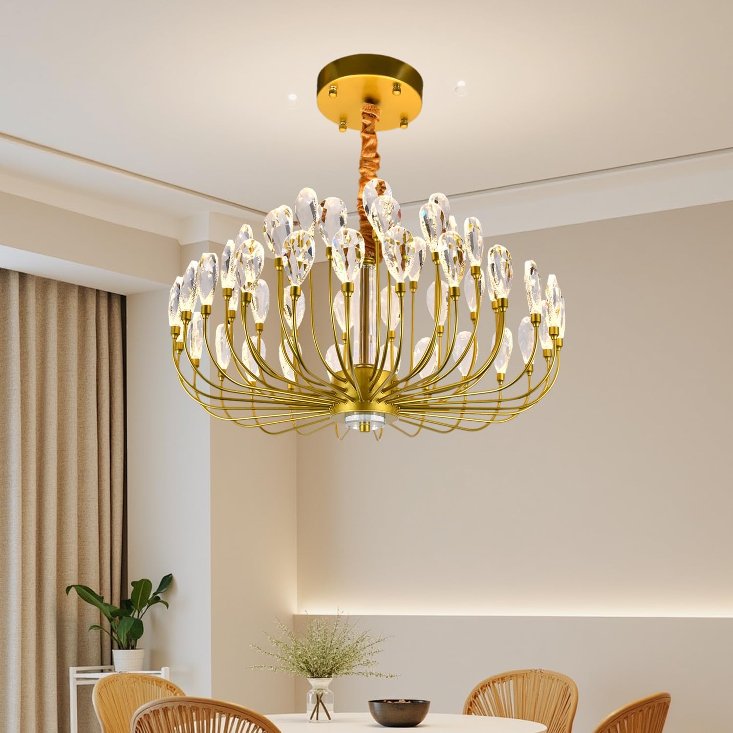 - Dimmable modern chandeliers:Tree branch aesthetic with 48 individually placed LED crystals creates organic light patterns.Integrated LED technology eliminates need for separate bulbs. Adjustable color temperature allows switching between warm and cool white