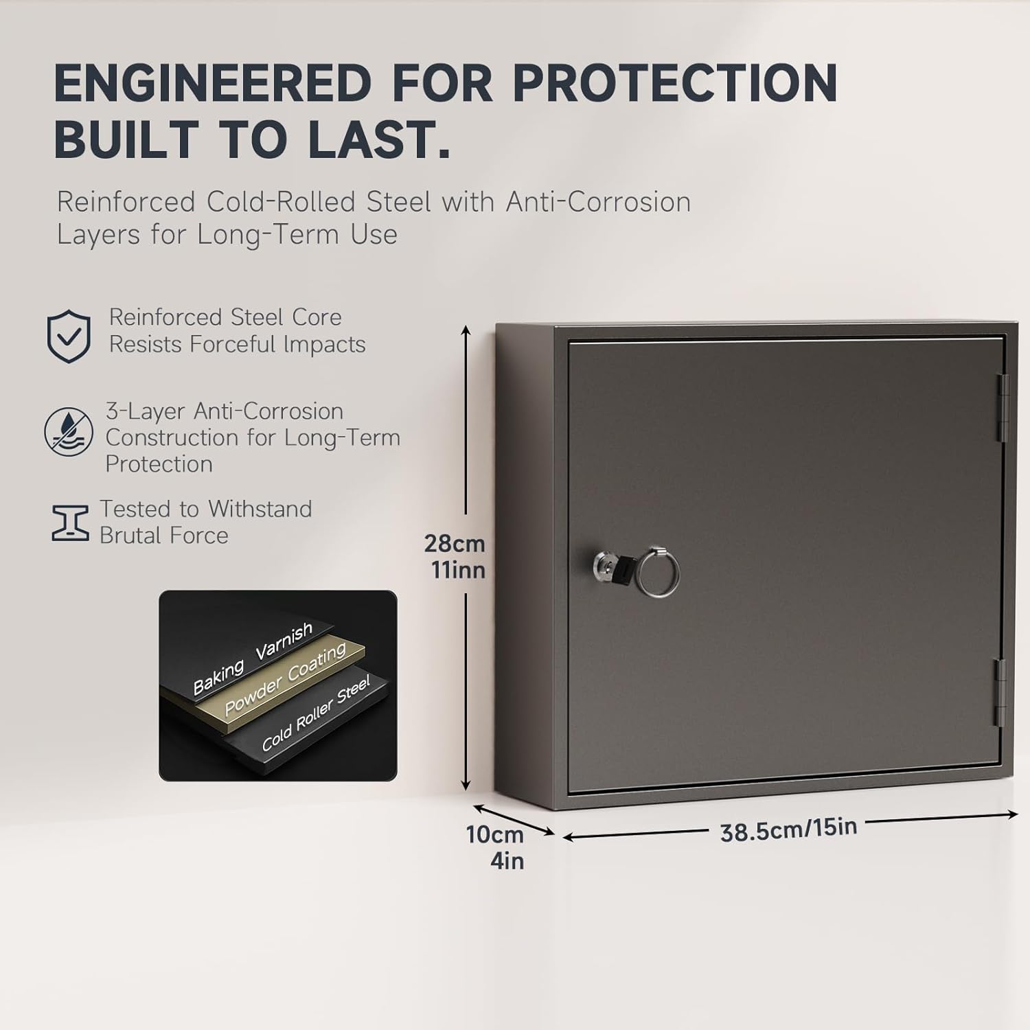 - Heavy-Duty Key Lock Box β Secure 60-Key Storage: This key lock box is made of reinforced cold-rolled steel with a durable powder coating, ideal for storing and organizing up to 60 keys for home, office, or business.