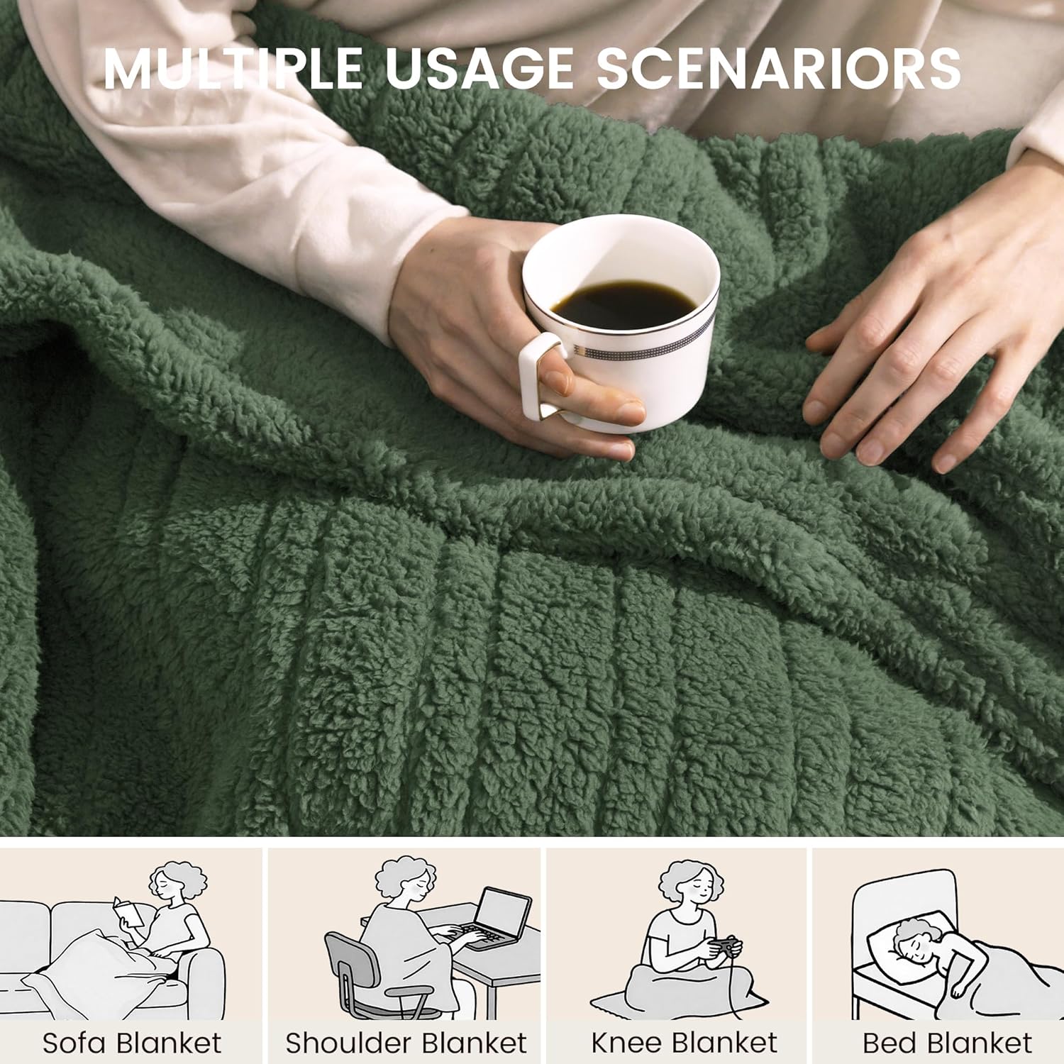- Double-Sided 480GSM Sherpa for Luxurious Comfort: Experience next-level coziness with our double-sided Sherpa design — thick, plush, and cloud-soft on both sides. The premium 480GSM material locks in heat, offering full-body warmth and comfort without cold spots. Whether youre relaxing on the sofa, unwinding after work, or enjoying a peaceful sleep, this blanket wraps you in pure softness from every day