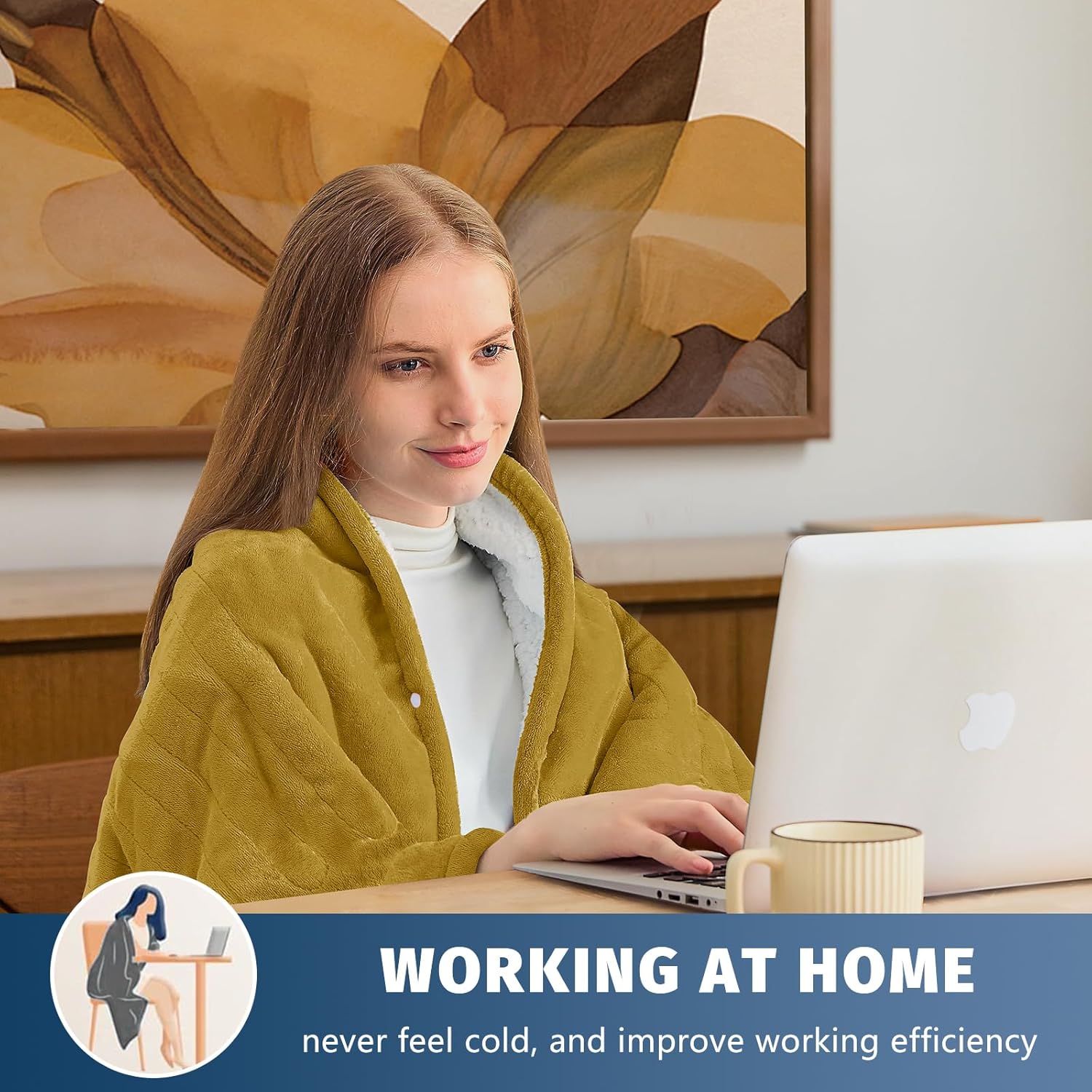 - 【FLEXIBILITY & COMFORT】: Sherpa heated blanket with a 7.87ft power cord gives you more room to move around, no worrying about the distance between the socket and car heated blanket. Electric throw with buttons is suitable for single use, great for keeping a portable heated blanket in place when you drape it over your shoulders as a heated blanket sweater, watching television, reading books, relaxing at home on the couch or sofa; during work on office, bring you a warm and comfortable life.