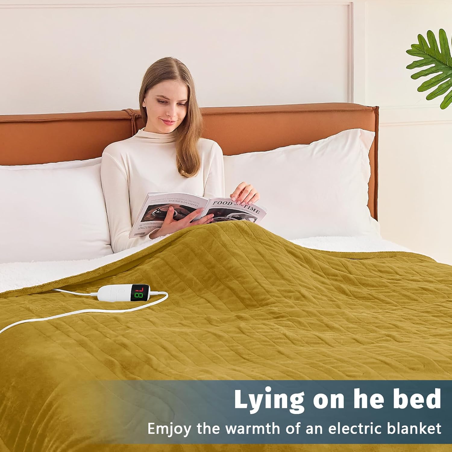 - 【10 HEATING LEVELS】: Find your perfect warmth in heated comforter with 10 different heating levels( 83℉-113℉) using LED controllers, which can intuitively display the temperature and customize the time. Wrap yourself in electric throw blankets for adults and enjoy all-night warmth if you're struggling to sleep in cold weather because you're curled up in bed with cold hands and feet.