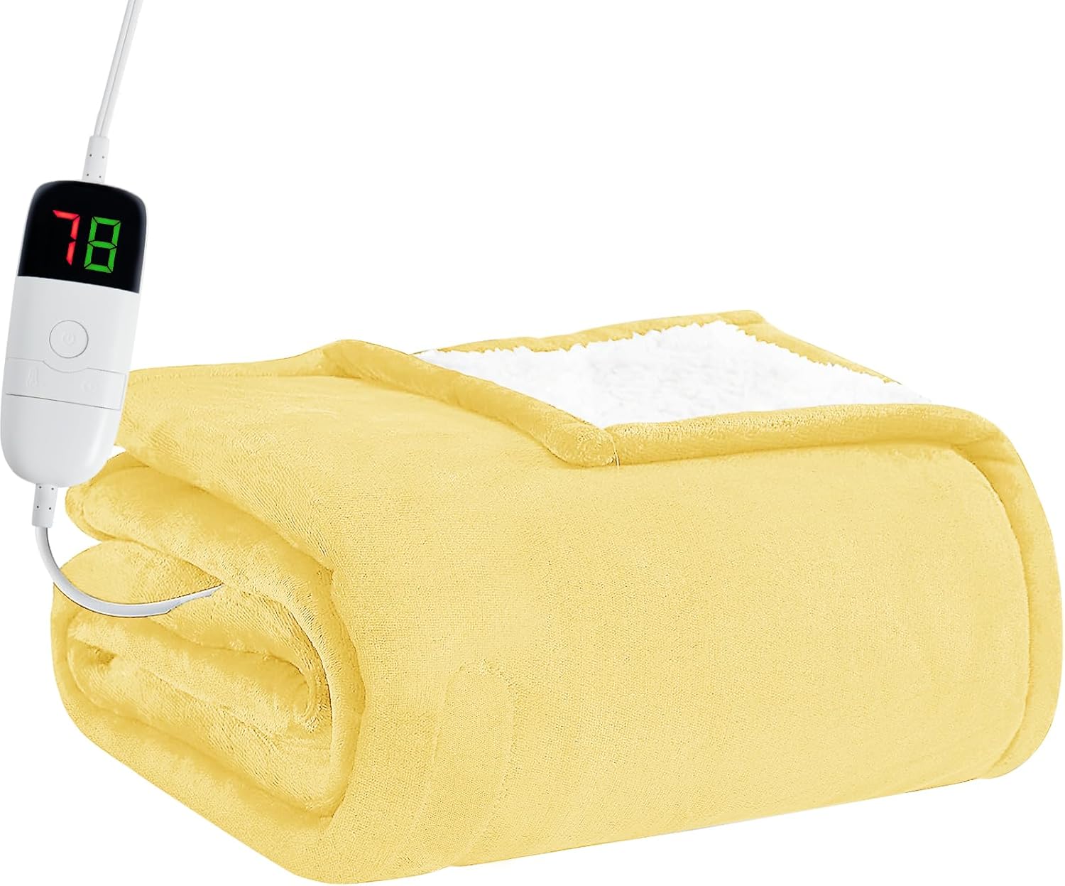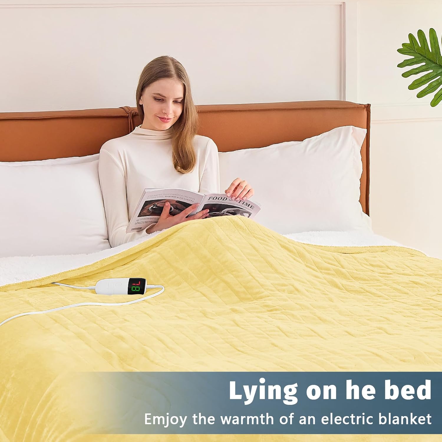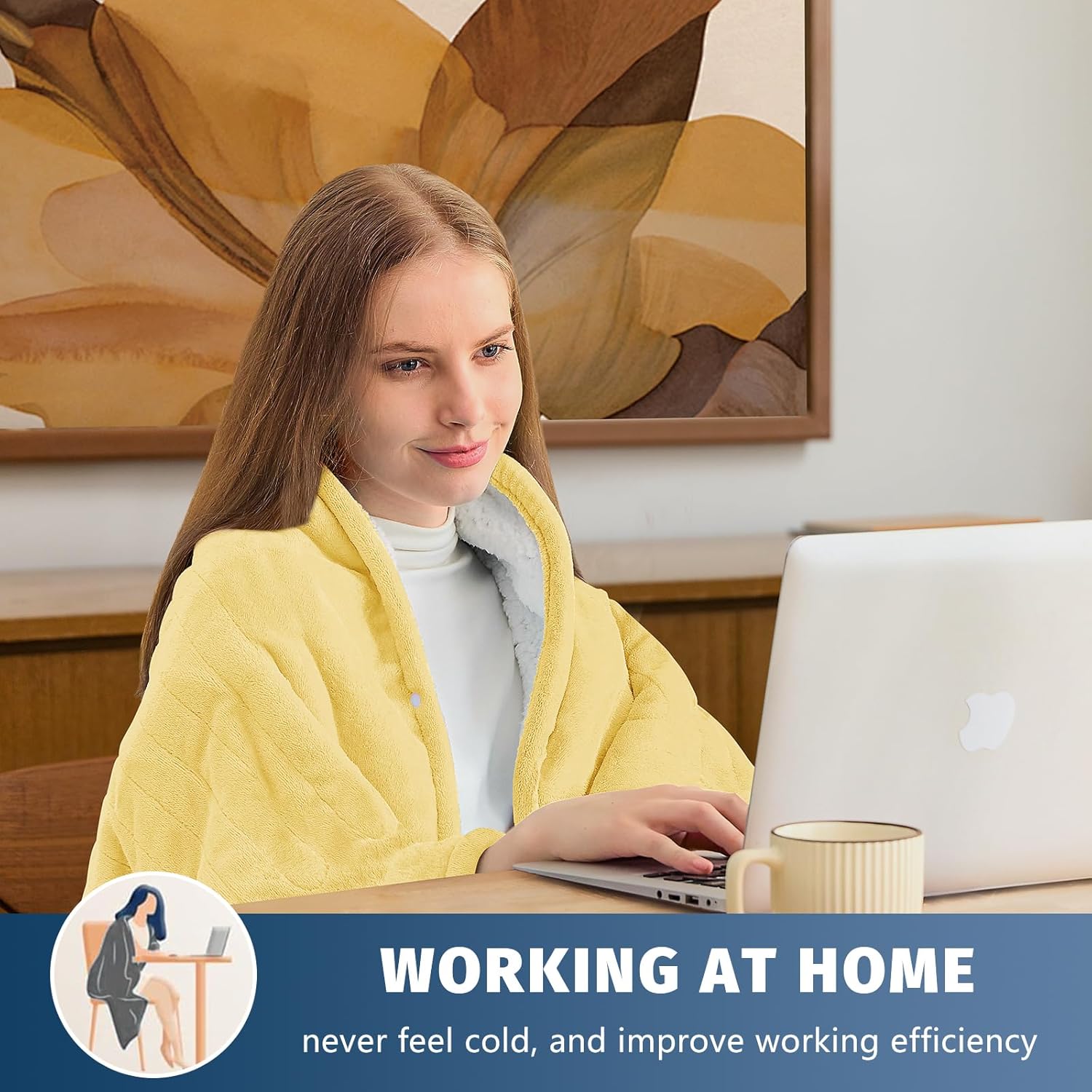 - 【FLEXIBILITY & COMFORT】: Sherpa heated blanket with a 7.87ft power cord gives you more room to move around, no worrying about the distance between the socket and car heated blanket. Electric throw with buttons is suitable for single use, great for keeping a portable heated blanket in place when you drape it over your shoulders as a heated blanket sweater, watching television, reading books, relaxing at home on the couch or sofa; during work on office, bring you a warm and comfortable life.