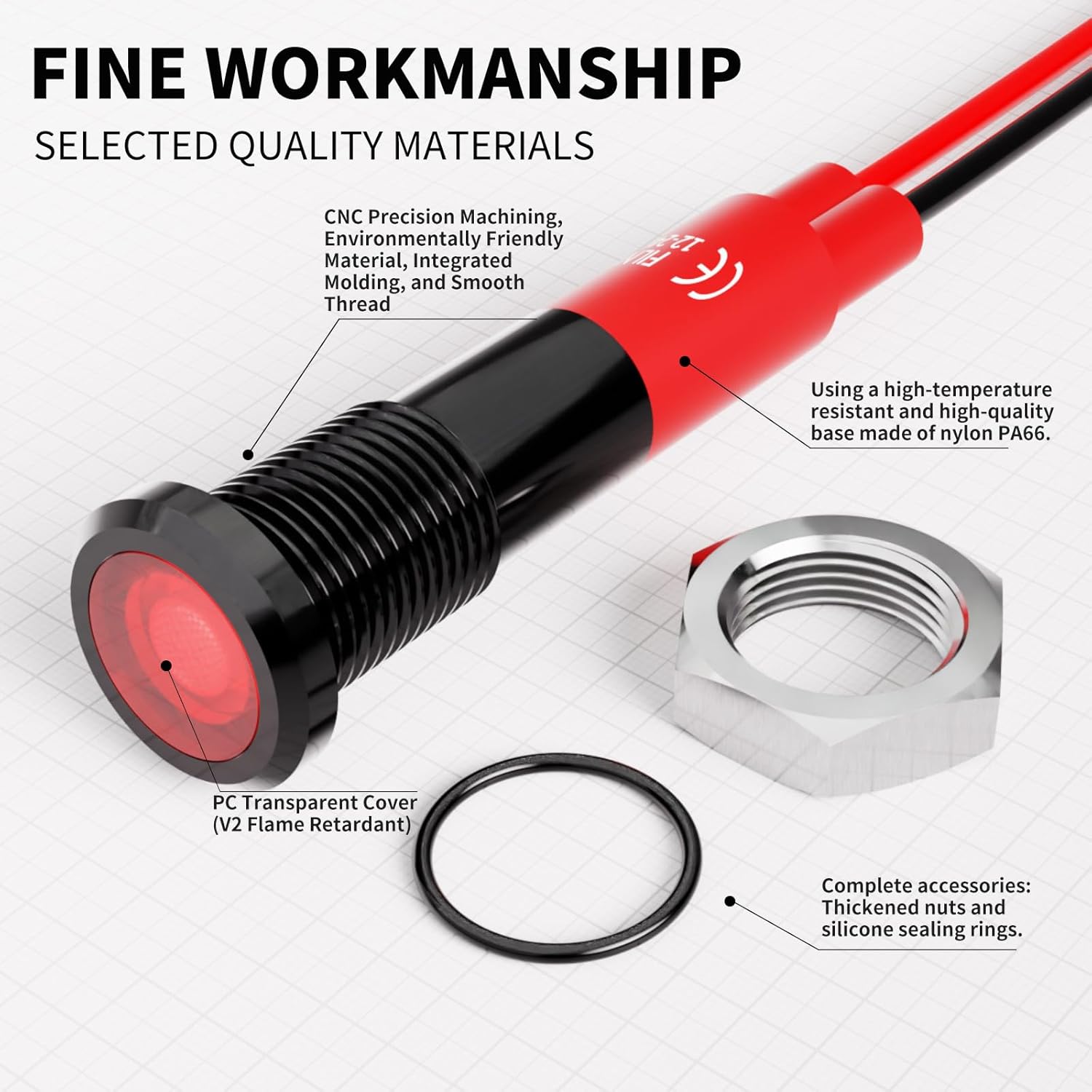 - Features] Adopting a new generation design and materials to ensure durability and maximum strength, suitable for long-term use. Easy wiring: This indicator light is equipped with a PVC positive pole marking line, which is quick and easy to install.