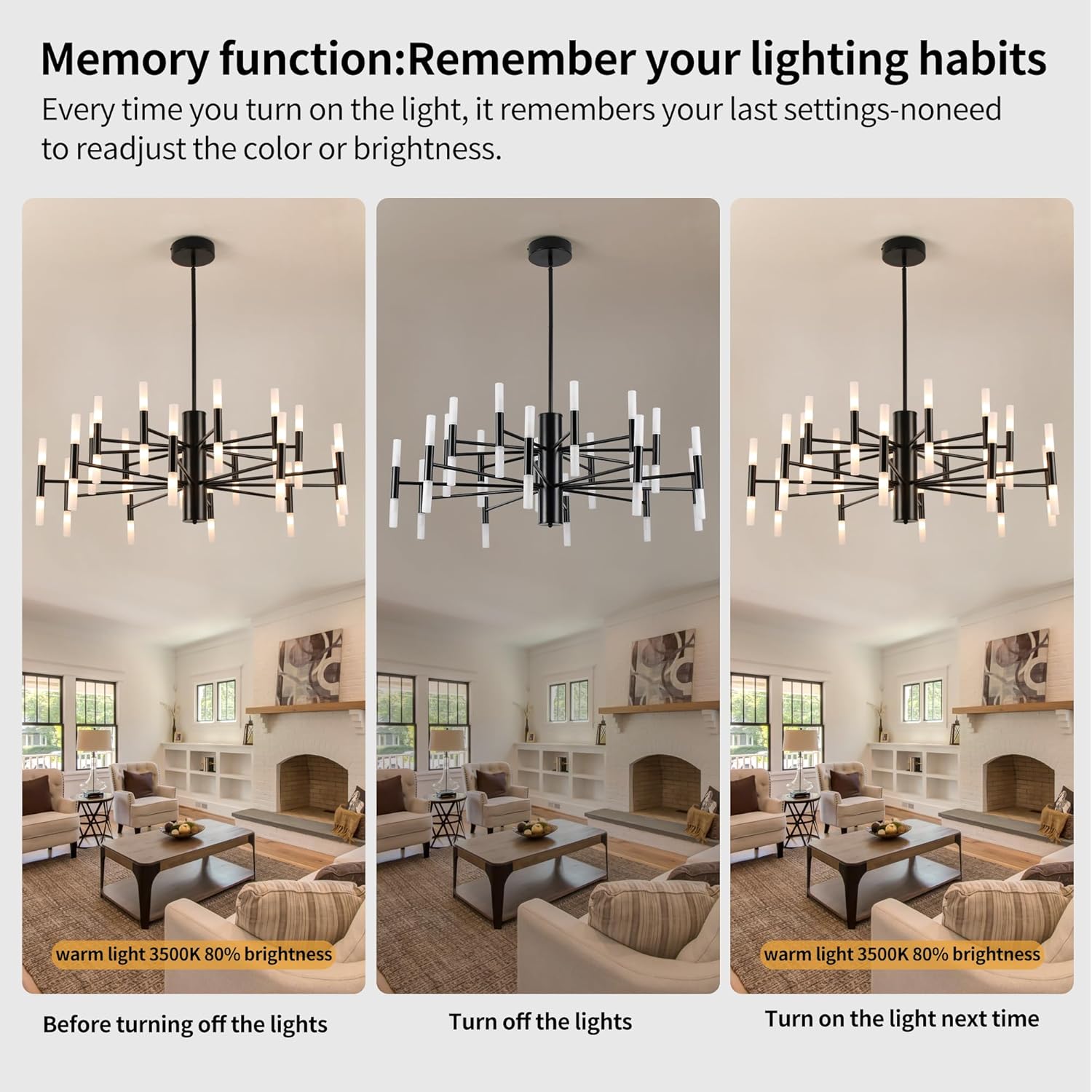 - 【Remember your lighting habits】Say goodbye to tedious adjustments! Our smart lighting fixtures are equipped with an intelligent memory chip that automatically saves your last lighting settings. Whenever you turn it on, instantly restore your most comfortable lighting atmosphere. Time saving and worry free, lighting up is the familiar beauty.