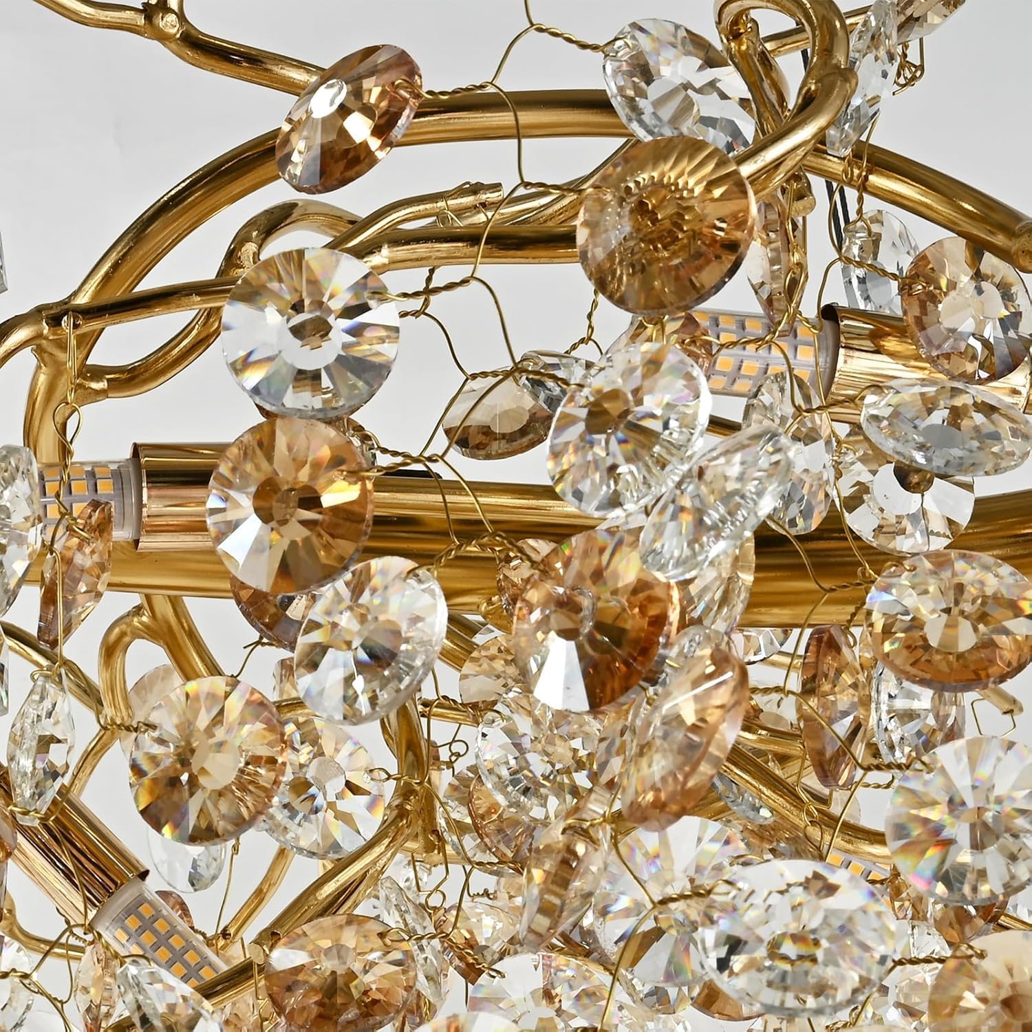 - Because the light body is made of aluminum and has many branches, There will be slight scratches on the surface. Our crystal chandelier style is artistic and pastoral. In order to retain the original style of the lamp, There will be no special treatment for the welding scar. The crystal handmade, It's hard to avoid a little bruising. If you cannot accept it, Please consider it when you want buy it