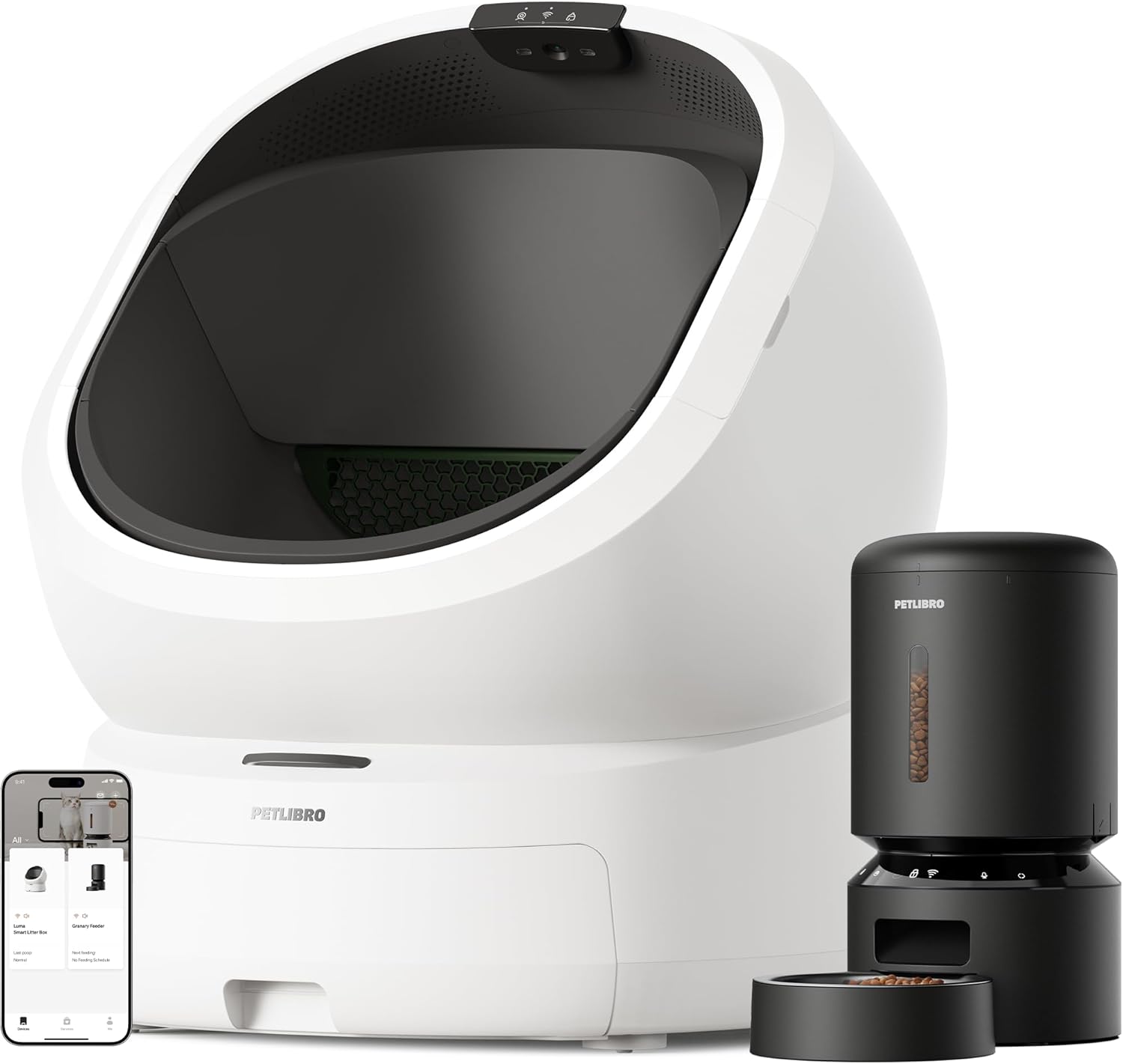 Bundle of PETLIBRO Luma Automatic Cat Litter Box AI Waste Analysis + PETLIBRO Automatic Cat Feeder, 5G WiFi Food Dispenser with Freshness Preservation, 5L Timed Feeder with Low Food Sensor